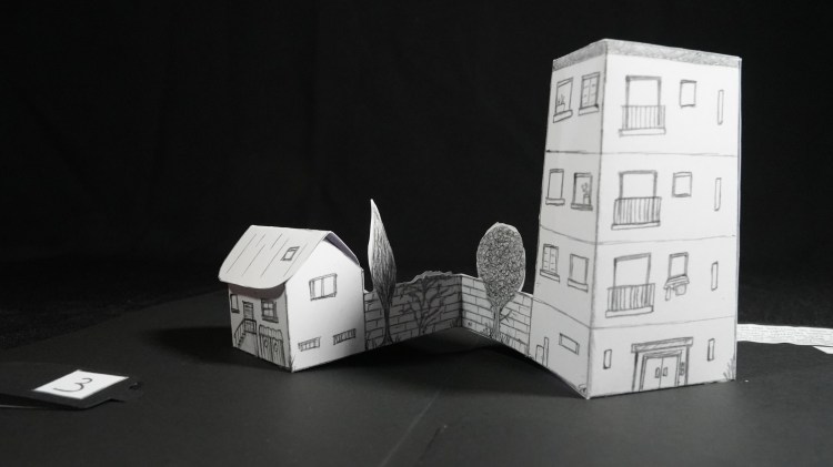 Ici il faut passer la vieille grille qui grincePuis longer la petite maisonMa caravane paisibleSur le chemin où se cachent rondement des escargots par dizainesJe vois sur le sol un mot à la craie qui rappelle l’amourEt des petites fleurs sucrées sifflotent On s’est réfugiée ici, usé(e)s par la route et la dureté des choseset…